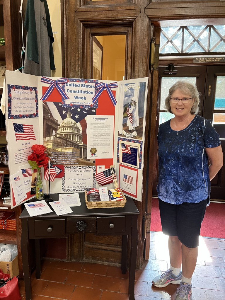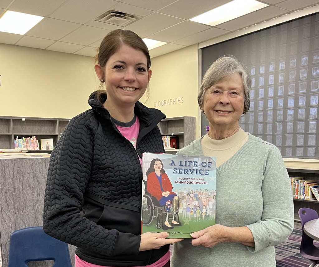 Abendschone DAR Chapter donated/presented biography books to the Carroll County elementary school libraries and public libraries in Eureka Springs, Berryville, and Green Forest. Donating the book is an example of promotion of children’s literature and service to America, which are goals of Daughters of the American Revolution. Pictured above are Abendschone Chapter regent Terri Herman (left) and Eureka Springs Elementary librarian Amy Maliska.