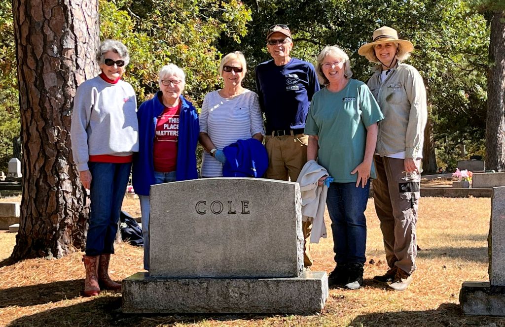 The Eureka Springs DAR chapter members from Abendschone Chapter, NSDAR, attended a headstone cleaning class with Eureka Springs Cemetery Superintendent Bruce Wright on Saturday, October 15. The ladies soaked, scrubbed, and cleaned 23 headstones. Some of the headstones were deceased DAR members and their families, others were stones needing attention due to their many years in the cemetery. The pictured headstone is of Joada John Cole. She was a member who died in 1996 and was an author and historian.